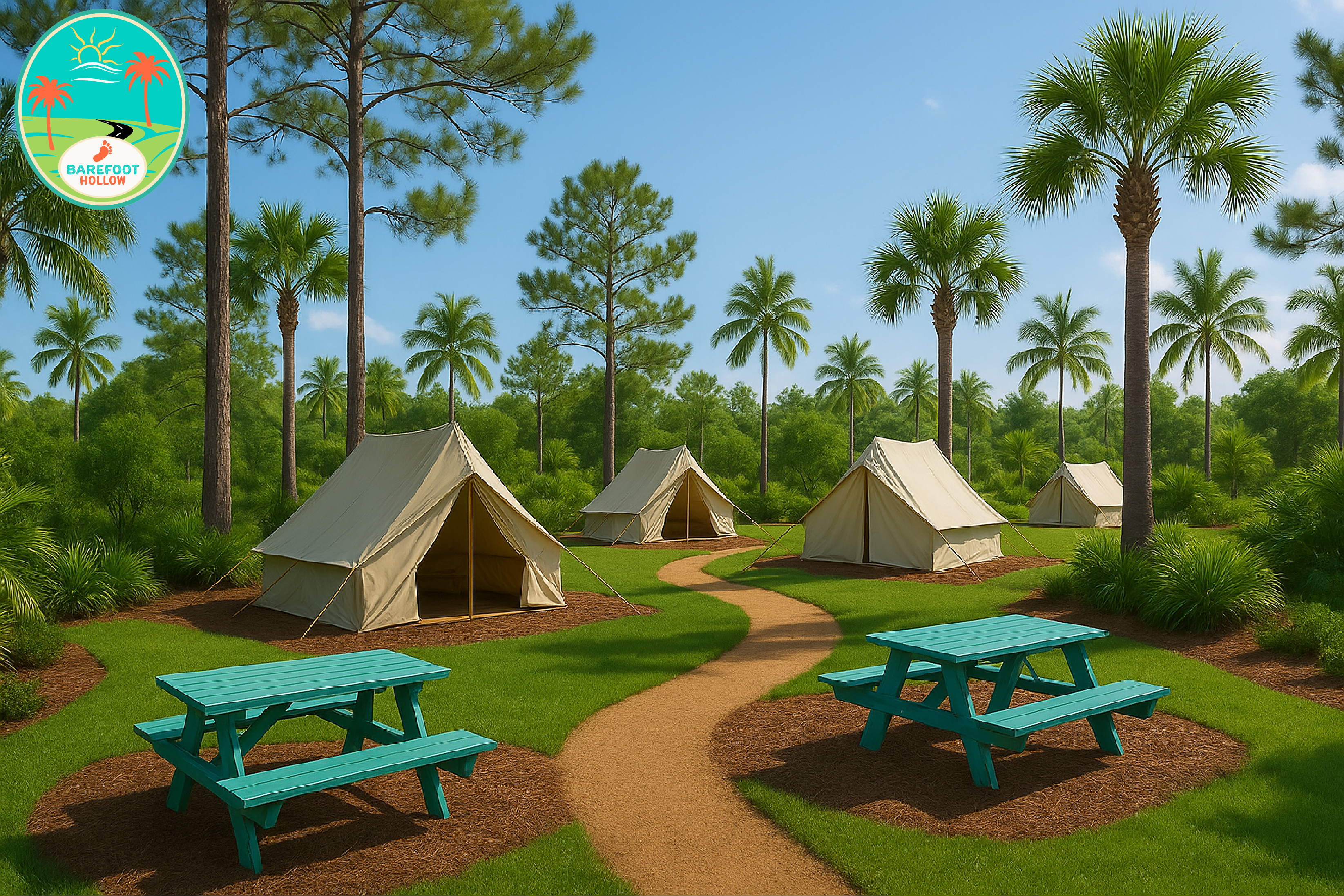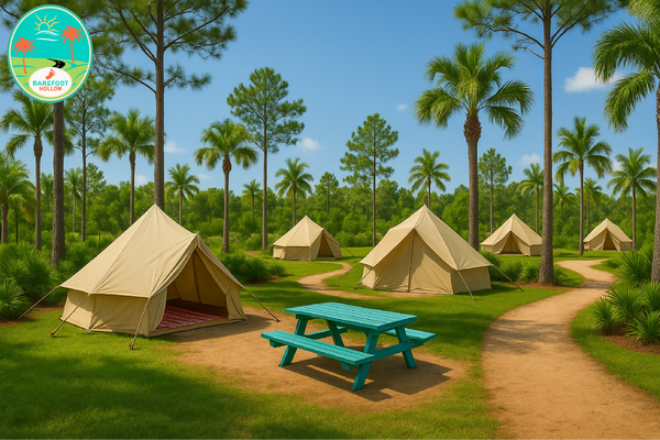 Reconnect with nature, unwind under the palms, the pines, and experience camping the Barefoot Hollow way, relaxed, refreshing, and unforgettable.